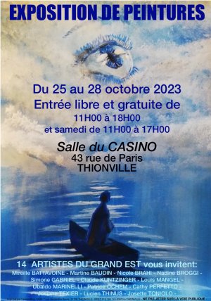 L’association PAGE organise une exposition de tableaux et de sculptures à Thionville, salle du Casino, du mercredi 25 octobre 2023 au samedi 28 octobre 2023. Entrée libre et gratuite de 11h à 18h – samedi de 11h à 17h.